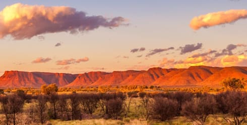 Spend the morning exploring the rugged Kings Canyon and do the famous rim walk up and across the Kings Canyon plateau. From the sandstone domes of the 'Lost City' to the oasis of the 'Garden of Eden', you’ll walk across red rock cliffs that protrude from the land and take in views of the palm forest below. Then hit the road again for a scenic drive across the sprawling landscape to Uluru-Kata Tjuta National Park. Arrive at Kata Tjuta (formerly known as The Olgas) – a collection of 36 towering rock domes – and walk to a popular lookout to admire the formations. After, head to one of Australia’s most spiritually significant and iconic sites, Uluru. Enjoy the view from a prime location as the sun sets over the epic sandstone monolith – watching the landscape shift in colour is a sight you won’t soon forget!