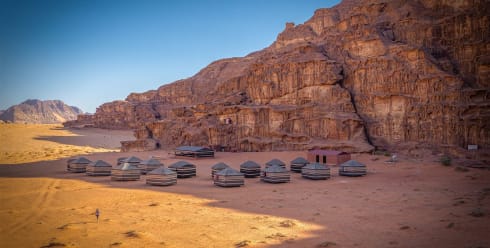 Visit Petra again at sunrise before driving to Wadi Rum for a Jeep tour through the rolling sand dunes and some light hiking. Enjoy the sun slipping beneath the horizon amid the desert landscape and savour a delicious dinner back at camp with the group.