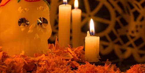 Day of the Dead takes place between October 31 and November 2 and is a celebration and remembrance of the deceased. Families will build private altars and bring large feasts to cemeteries, to be with the souls of the departed. It is believed that the souls will come back to visit and take part in the celebrations. Some of the “ofrendas” (altars) are very elaborate and include sugar skulls and marigold flowers. In most regions, the souls of infants and children are honoured on November 1. Adults are remembered on November 2. It is generally a festive rather than somber gathering.