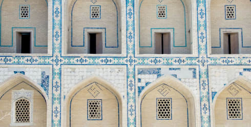 Travel from Tashkent to Bukhara by train this morning (approx 4 hours). Located on the ancient Silk Road, Bukhara was an important regional and world hub for many, many years and has a long, fascinating history featuring invasions by both Genghis Khan and the Soviet Red Army. The majority of the town centre is filled with beautiful old buildings and, after checking into the hotel on arrival, you'll explore these on a guided tour. Visit the spectacular Ark building, a fortress that was occupied from the 5th century right up until its bombing in 1920, the Bolo - Hauz Mosque with its most elegant wooden carvings, and thousand - year old Ismail Samani Mausoleum. This shrine, built around the 10th century, was spared destruction during Genghis Khan's invasion as it's thought to have been buried as a result of flooding. It was discovered and excavated in the 20th century, and became a popular spot for pilgrims and local residents who considered it sacred.
